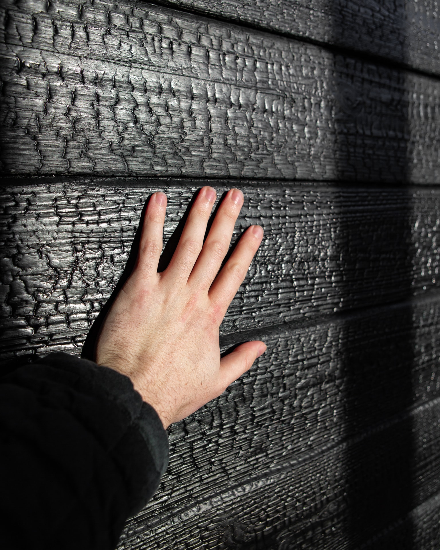 It’s quite simple. Sugi has several advantages over other woods, which render it crucial for the carbonisation process. It’s a softwood, with relatively low density but outstanding dimensional stability and rigidity. These features, alongside hard annual rings that are thicker and often closer together than spruce or larch, for example, perfectly underpin the carbonisation process, creating a strong soot layer that will last for decades without maintenance.