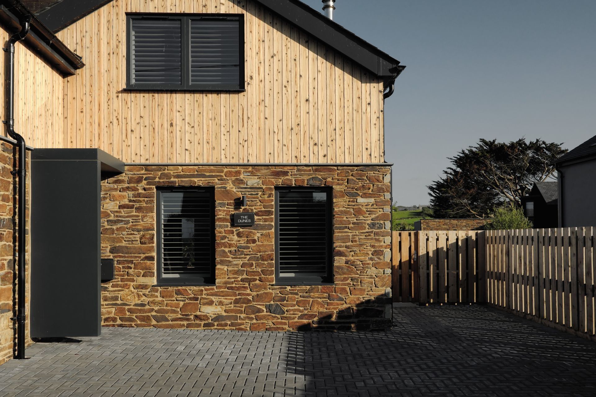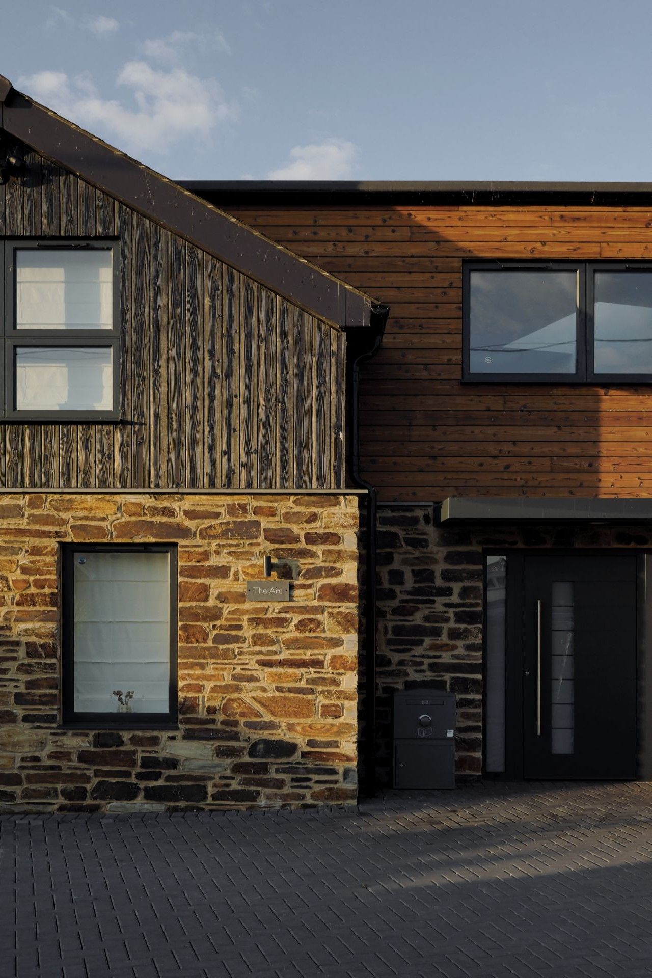 On Cornwall’s north coast, where slate cliffs taper into turquoise coves and the weather turns on a dime, this project takes its cues from the land and sea. The architecture is quiet and assured—rooted by coursed local stone and lifted by timber façades finished in Nakamoto Forestry’s Gendai and Pika-Pika, applied in a curated palette of colours. Together they form a material duet: the depth and shadow of charred cedar set against the crisp grain of brushed boards, each surface shifting with the Cornish light.