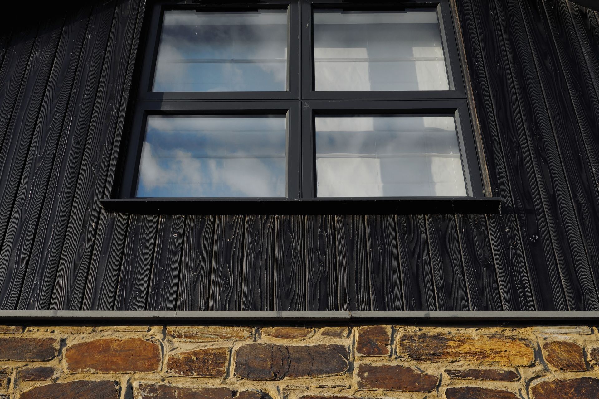 The composition is deliberately simple—pitched volumes, generous openings, and sheltered thresholds—so the craft and textures can do the talking. Stonework grounds the buildings in the vernacular, while the Yakisugi-treated cladding brings a contemporary precision and a proven resilience to salt, wind, and rain. Gendai provides a refined char with subtle sheen; Pika-Pika, with its pronounced brushing, reveals a lively, tactile grain. Used in several colourways, the timber reads like a family of tones rather than a single note, lending rhythm across elevations and between dwellings.